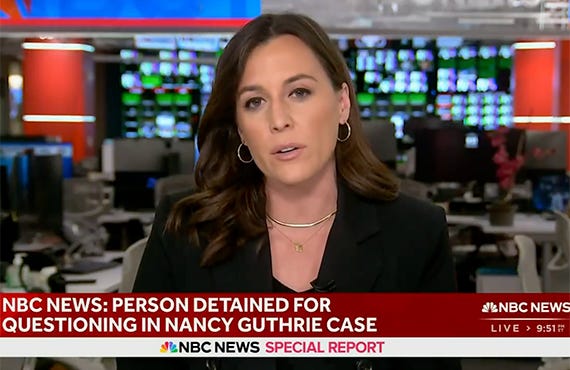 NBC cut into primetime Winter Olympics for 10 minutes for Nancy Guthrie “Special Report”: All three broadcast networks went wall to wall