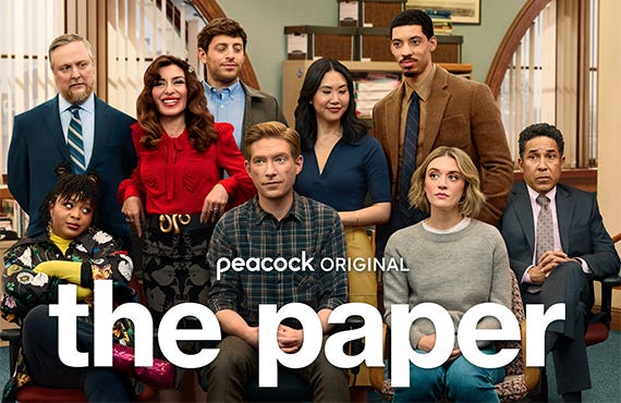 Peacock has decided to drop the entire 10-episode first season of its newspaper-based The Office follow-up on Sept. 4. That's a change from the original plan to roll out The Paper over four weeks: Four episodes on Sept. 4, followed by two episodes per week through Sept. 25. "Citing positive responses from people who have previewed the series (though not in print; reviews are embargoed until closer to the premiere), Peacock, Universal Television and the show’s producers decided to make the change and drop the entire season at once," says The Hollywood Reporter's Rick Porter. "The move will also put the entirety of The Paper in front of audiences several weeks before the start of the traditional TV season makes the premiere calendar even more crowded."